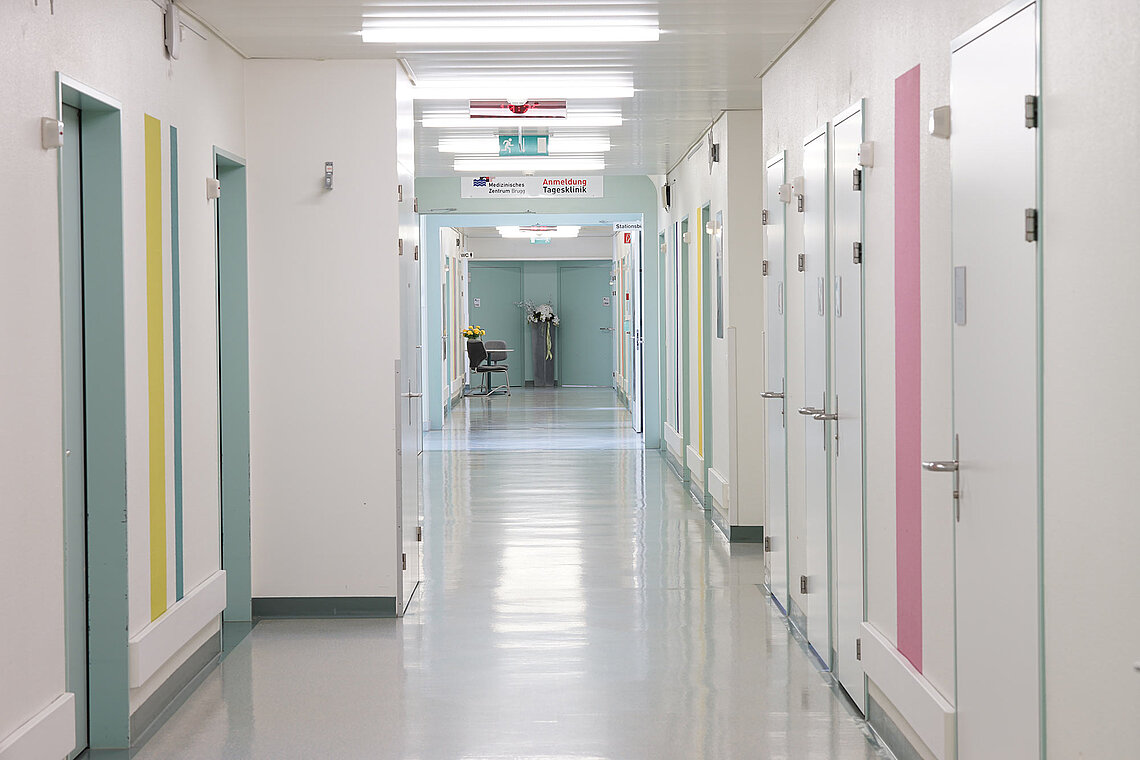 Die Anmeldung der Tagesklinik befindet sich im Gang des 1. Obergeschosses. Eine Pflegeperson wird sie dort in Empfang nehmen.